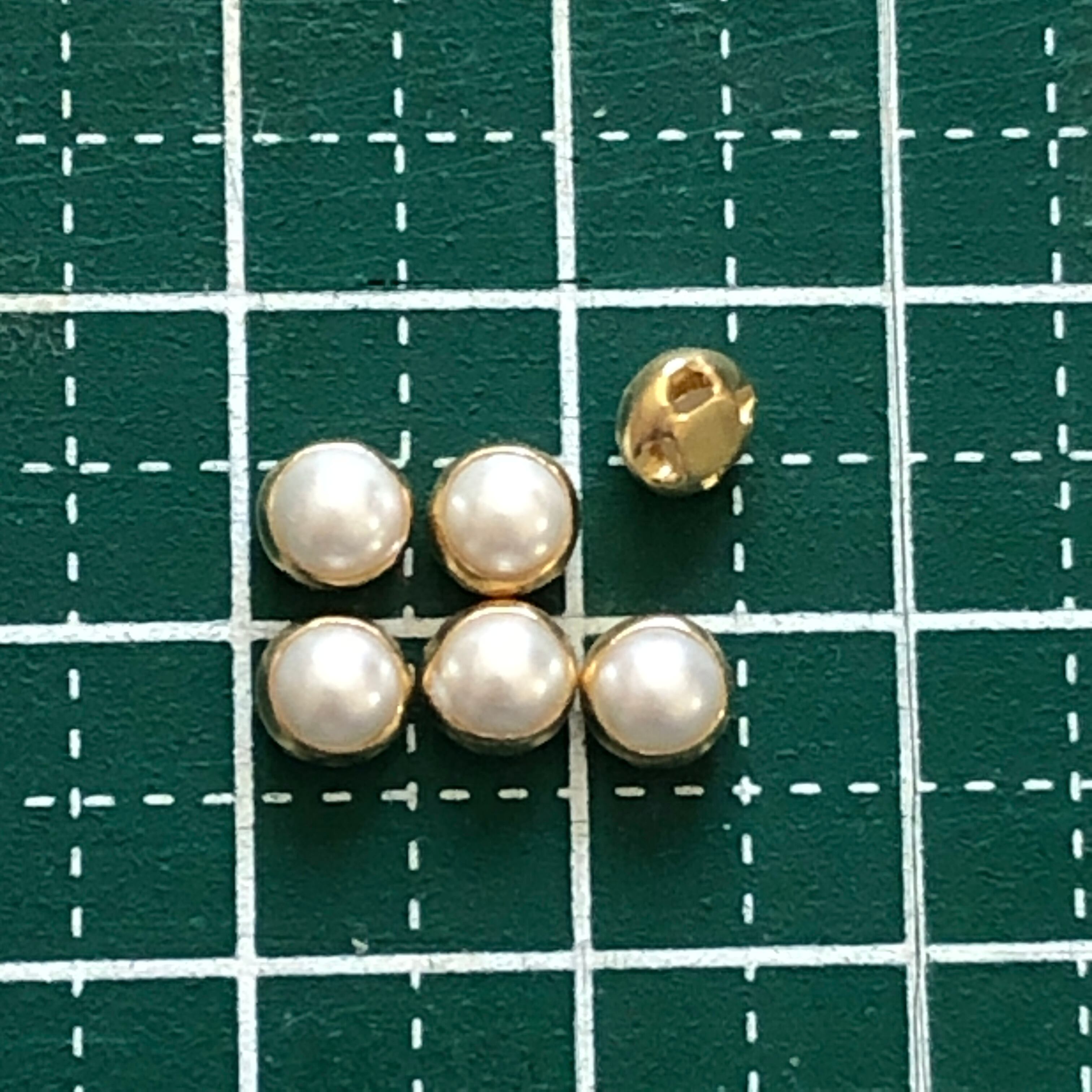 ドール用ボタン 足つき パール調 6ケ 4.5mm(点線は5mm間隔)